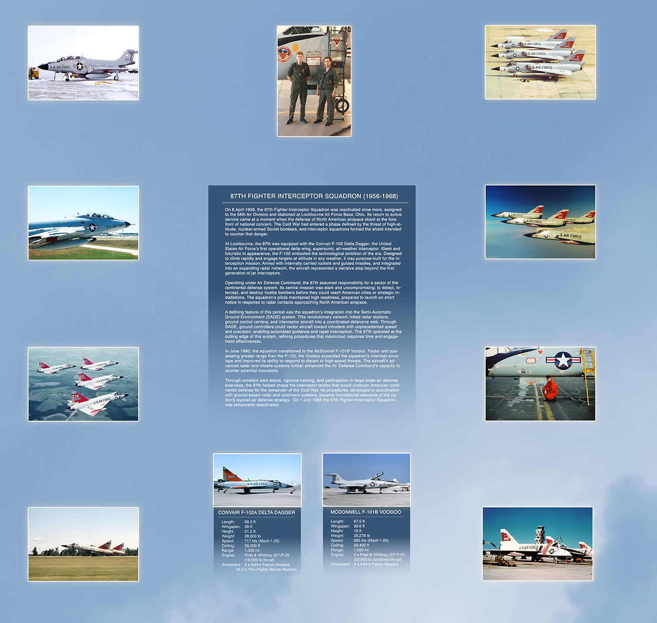 A defining feature of this period was the squadron’s integration into the Semi-Automatic Ground Environment (SAGE) system. This revolutionary network linked radar stations, ground control centers, and interceptor aircraft into a coordinated defensive web. Through SAGE, ground controllers could vector aircraft toward intruders with unprecedented speed and precision, enabling automated guidance and rapid interception. The 87th operated at the cutting edge of this system, refining procedures that maximized response time and engagement effectiveness.